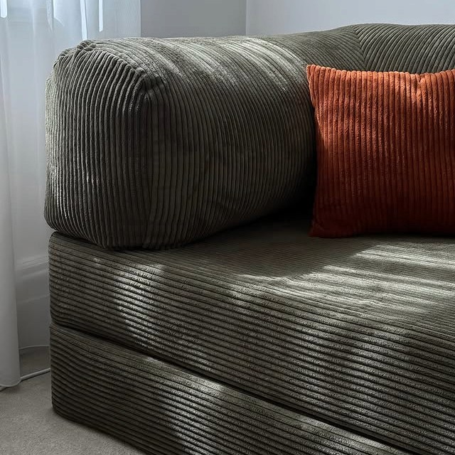No lifting heavy packages, no swearing, no wall scuffs – it arrives compact, vacuum-packed, you open the box and… POOF! A cloud of comfort in your living room.